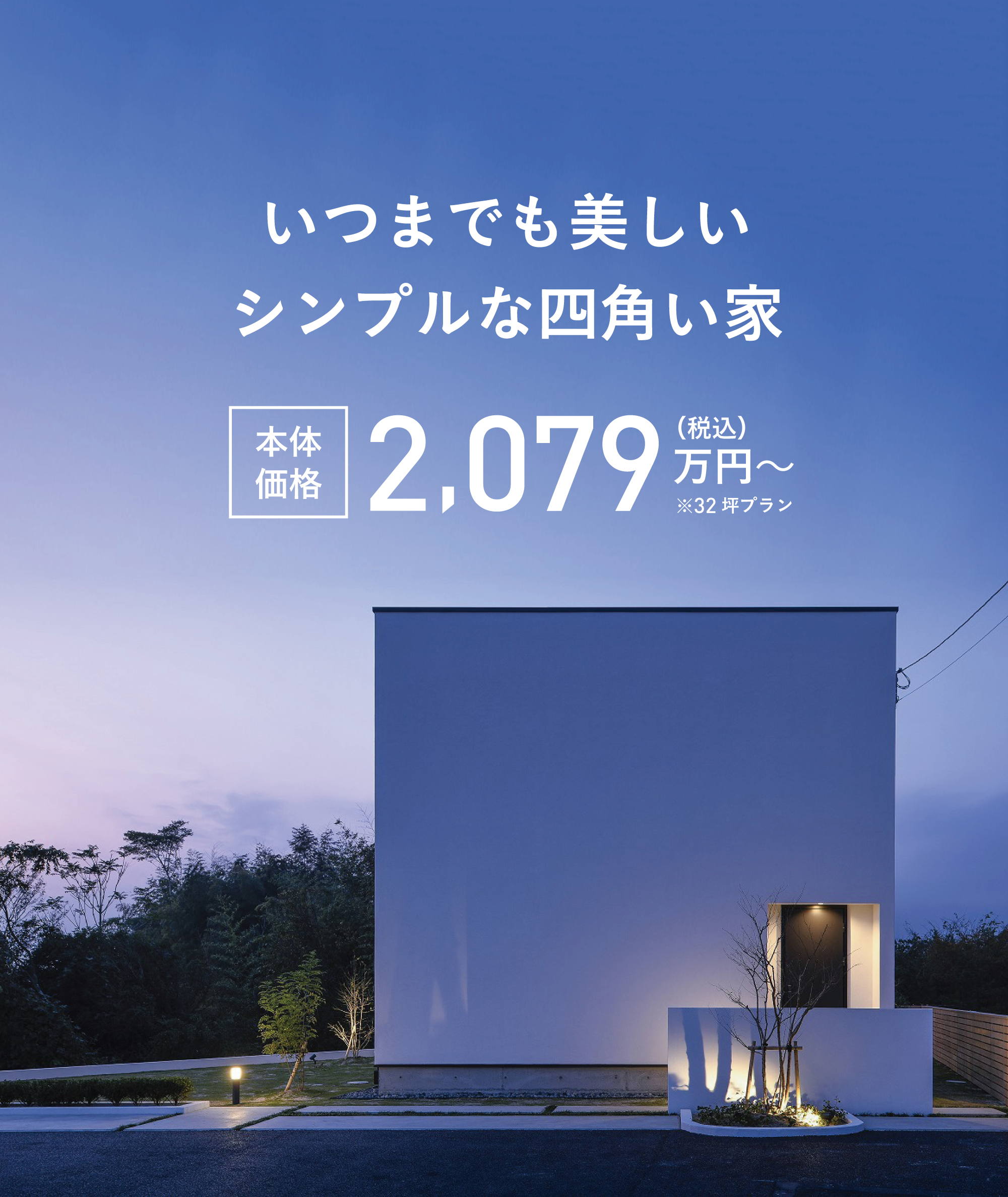 「casa cube」の四角いシンプルな外観は、飽きることのない「普遍のデザイン」の究極の形。正面には窓がなく、塗り壁が豊かな表情を演出します。