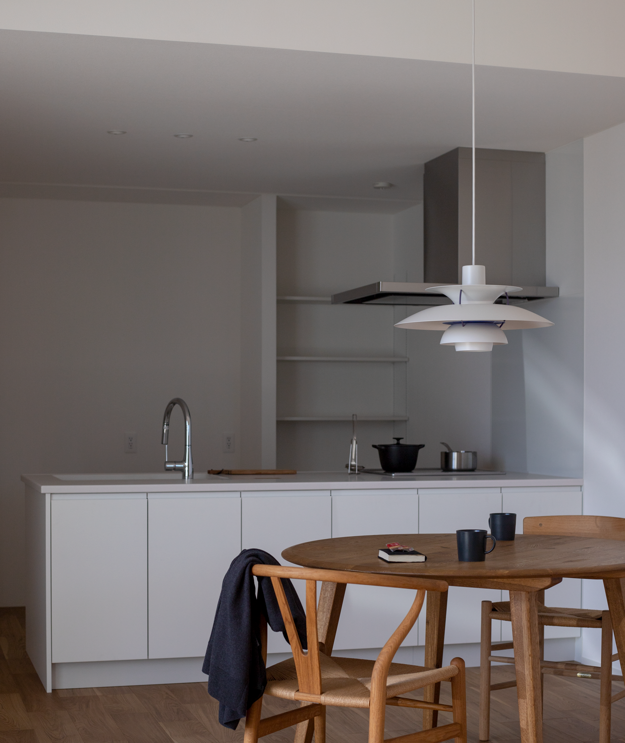敷地条件や周辺環境、 同一敷地内にご両親の住まいがあるという状況を丁寧に読み解き、 プライバシーと距離感のバランスを整えています。