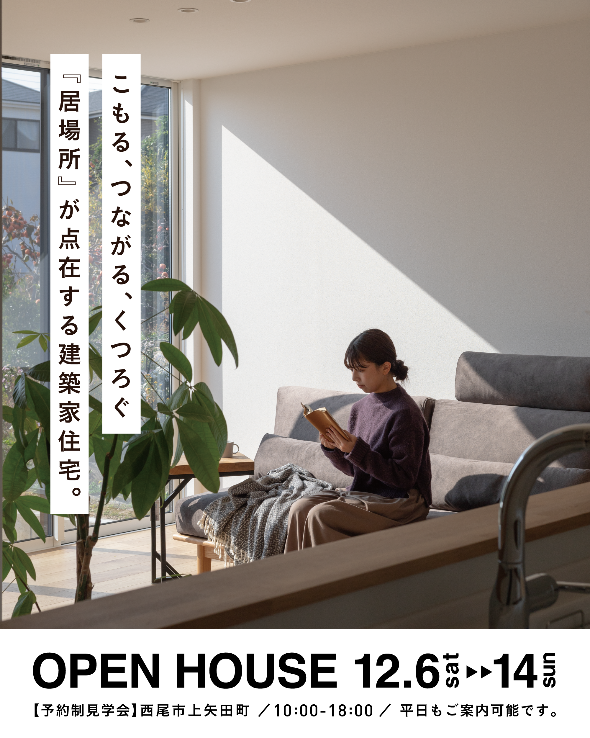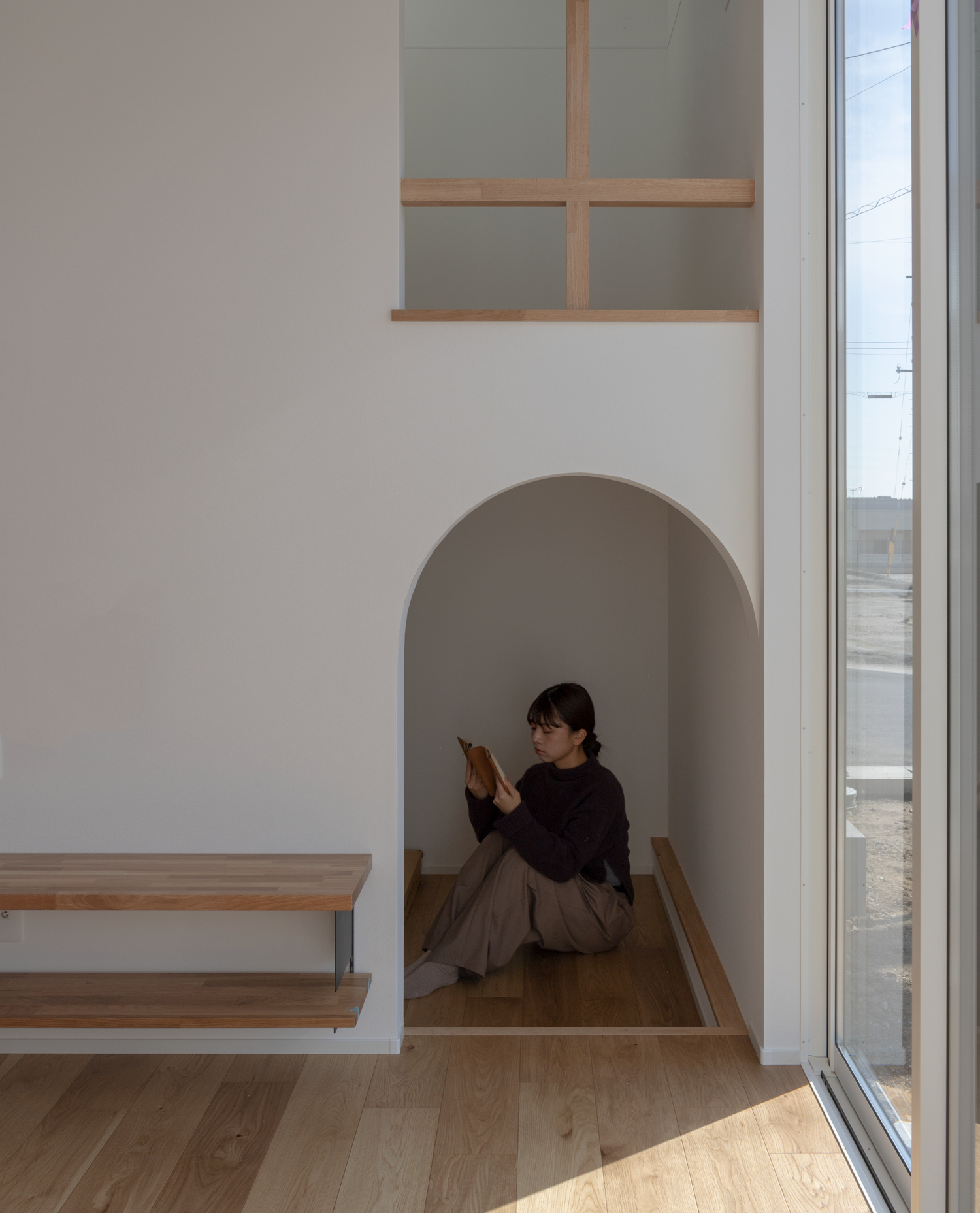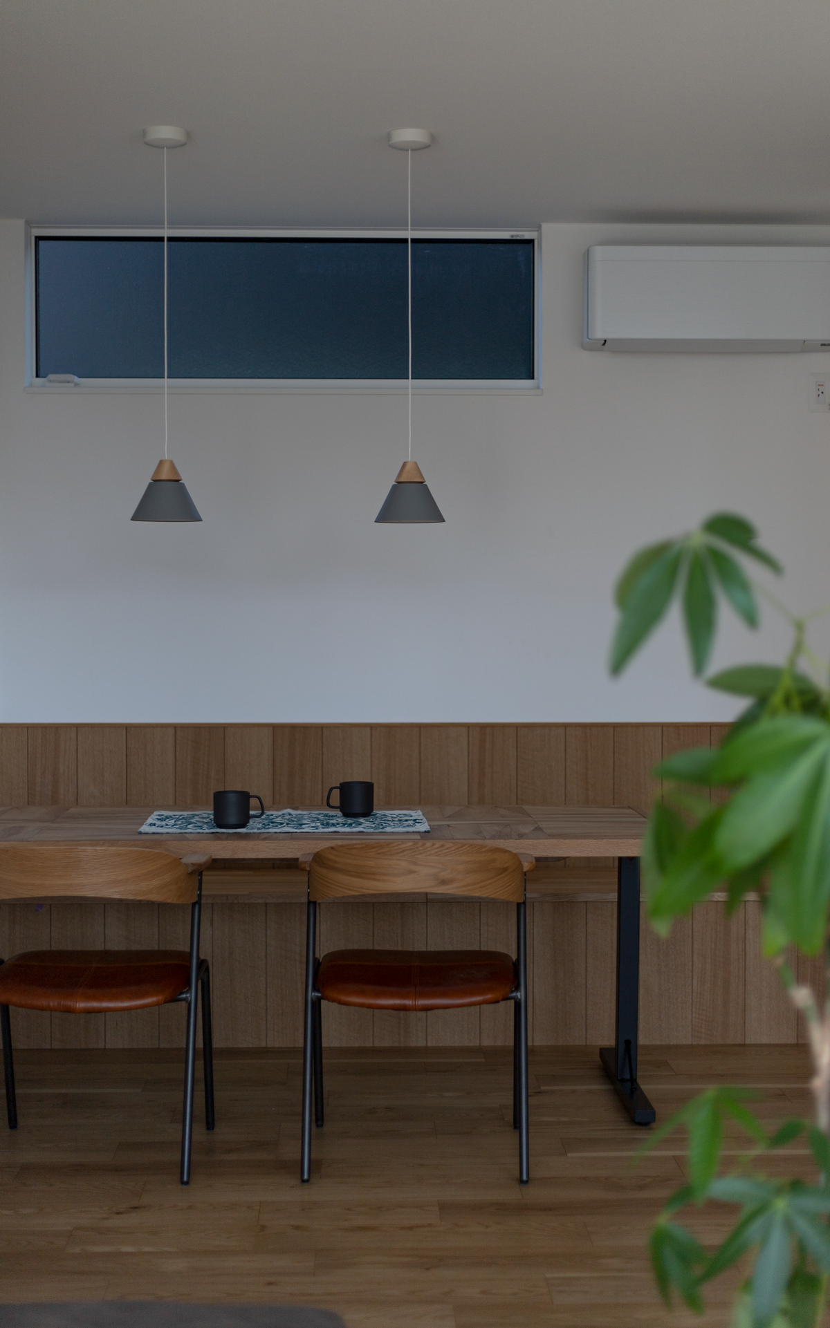 家の中に、ほどよくこもれる場所をデザインしました。キッチンやダイニング、くつろぎスペースのある踊り場、階段下の隠れ家など、オープンながら半個室のように落ち着ける空間が点在しています。家族の気配を感じながらも、自分の時間を楽しめる――集う楽しさと一人の時間の心地よさを両立させました。自然と会話が生まれる動線計画で、日常のふれあいが育まれる暮らしを提案します。建築家のアイデアを、ぜひご体感ください。